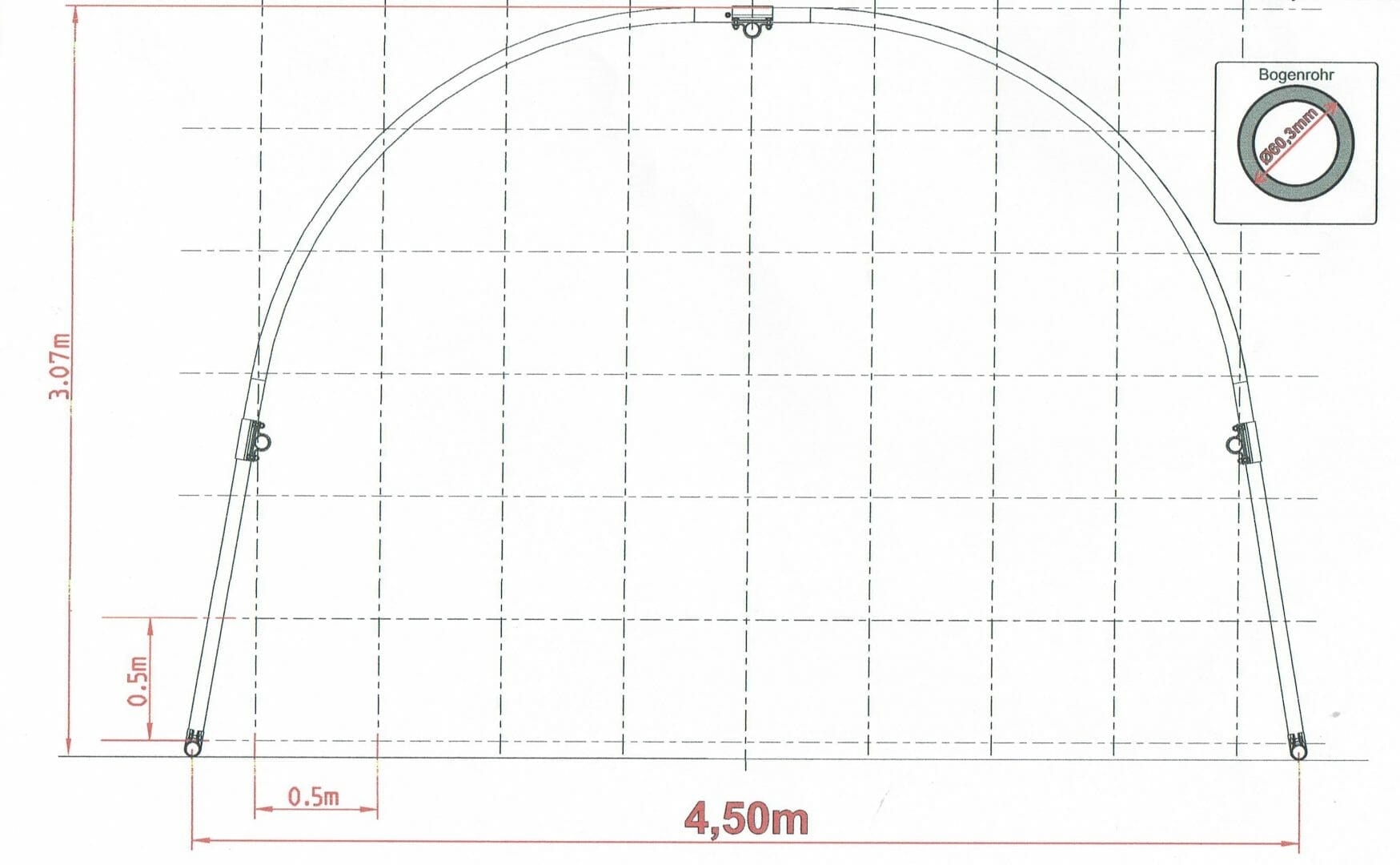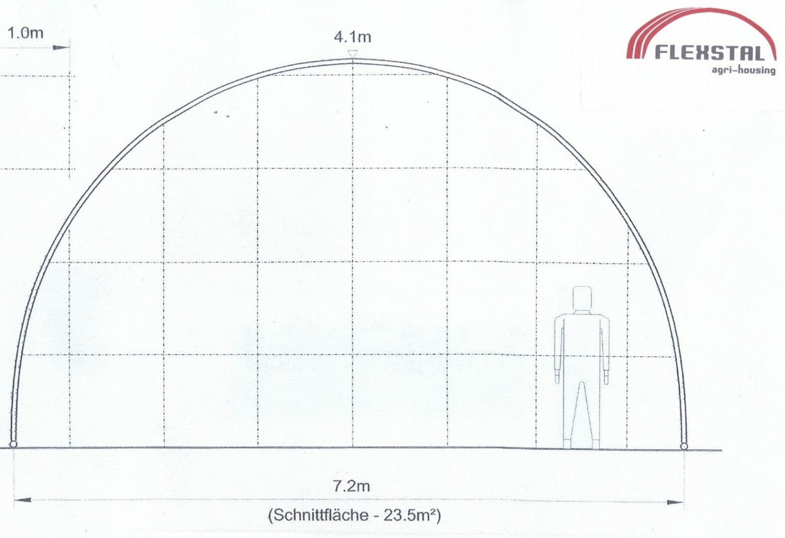 De FleXstal is een boogconstructie en is opgebouwd uit een thermisch verzinkte staalconstructie met een zware kwaliteit PE – doek bespanning.